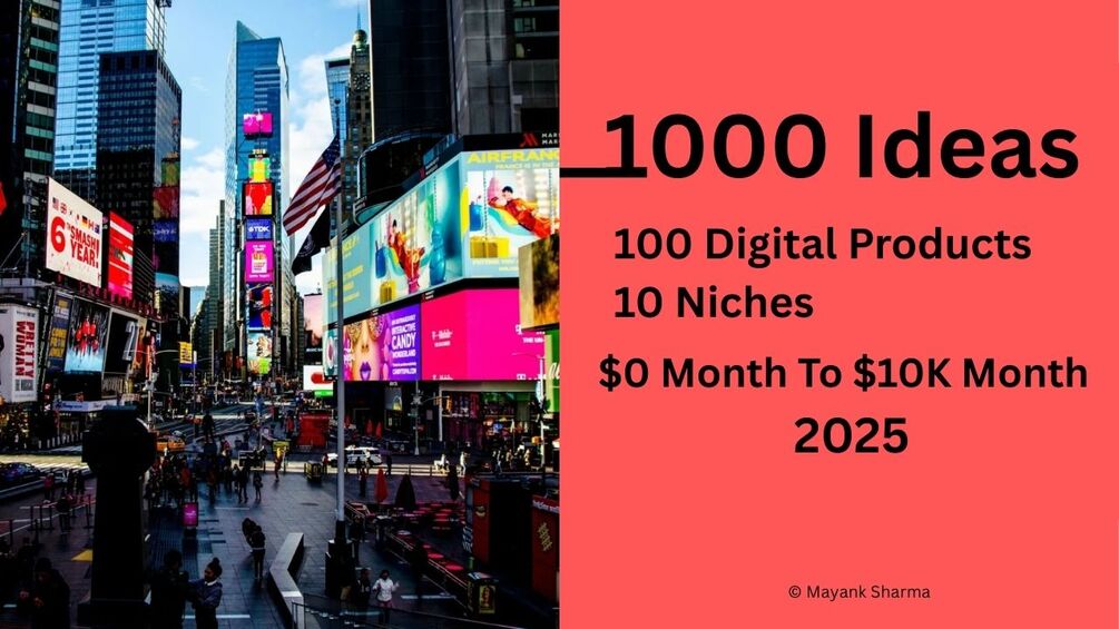 💼 1000 Ideas, 100 Digital Products, 10 Niches In Digital Product Business - $0 to $10000 Per Month Roadmap – eBook by Mayank Sharma